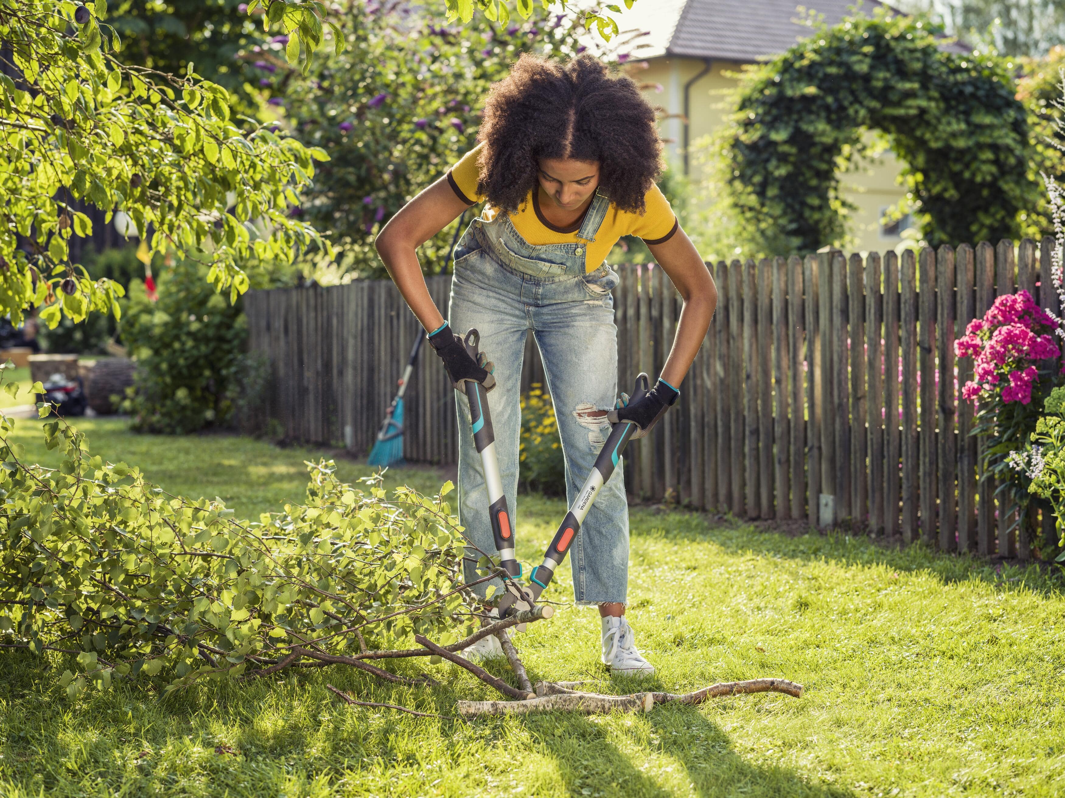 For cutting green branches on trees and shrubs, the TeleCut 650-900 B Pruning Lopper from GARDENA becomes your extended arm. Use the clever telescopic release to extend the handles up to 25 cm. This gives you the ability to reach branches further away and cut them with more power due to the increased leverage, which is a real help especially with thicker branches. The light 1.3 kilograms weight of the loppers is due to the use of lightweight materials such as aluminium and the well-designed shape of the handles. The built-in stop buffer made of special plastic, contributes to working comfort, as shocks are reduced and the wrists are protected. The ErgoTec handles with their good ergonomics also adds to the comfortable cutting action. They are equipped with a soft components stops the hands from slipping. The shears use the bypass cutting principle. This means the two ground blades slide past each other when cutting, leaving a precise and clean cut. Therefore, it is the right cutting tool when cutting fresh wood. The blades are non-stick, reducing cutting friction and making plant care easier. With the TeleCut 650-900 B, you can rely on a quality product made in Germany that GARDENA provides a 25-year warranty for. Express your vision with precision. Easy to use, effective and durable cutting tools for creative gardeners.